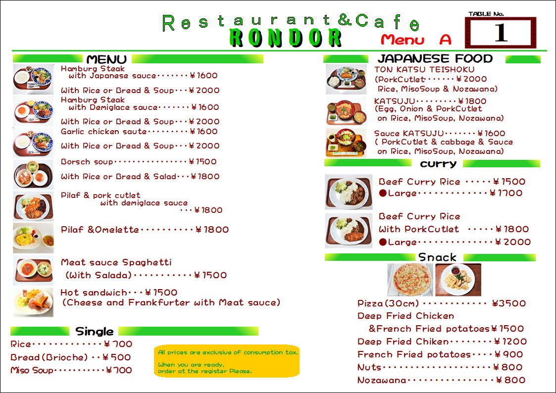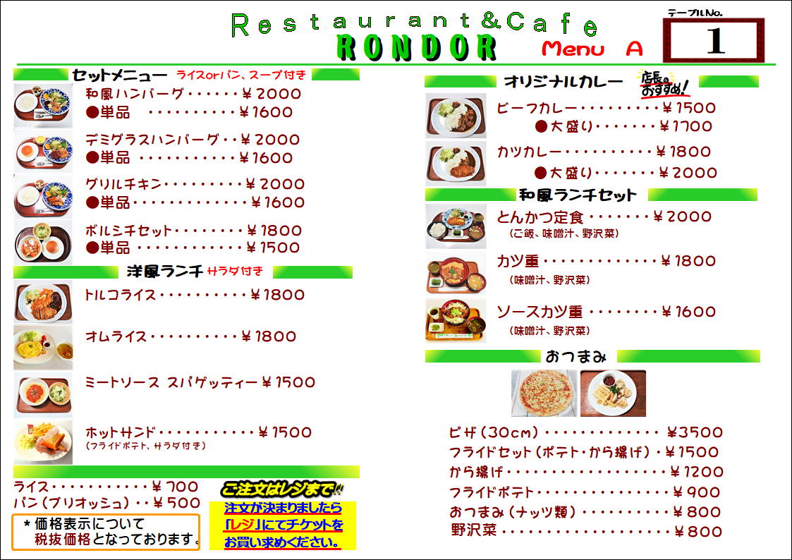 フードメニュー(Japanese)