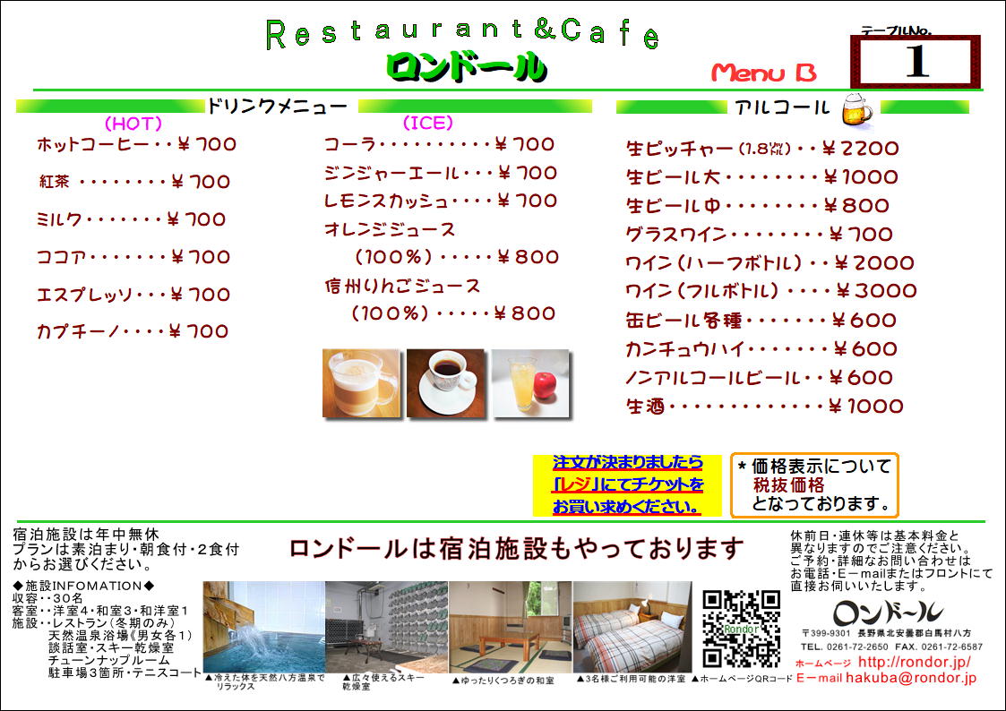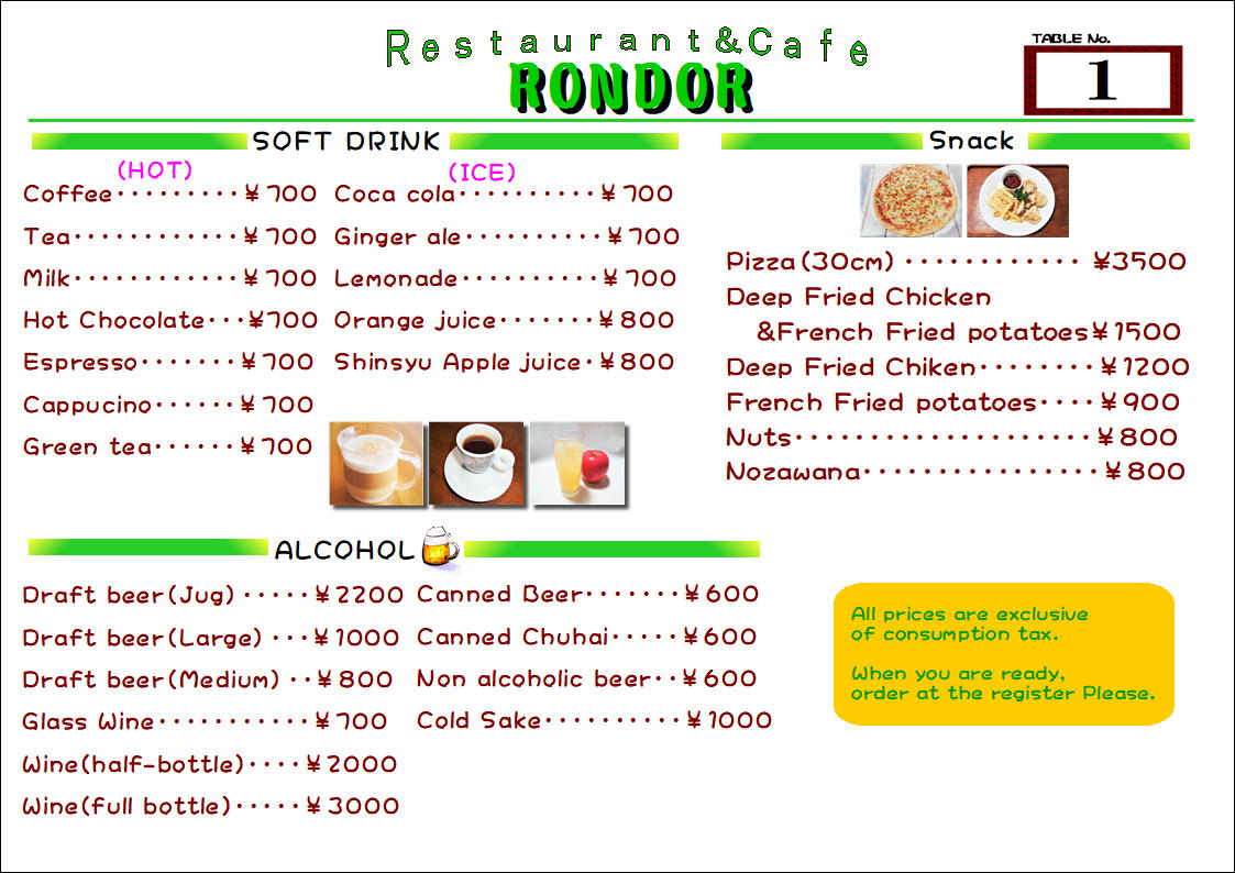 Drink menu(English)